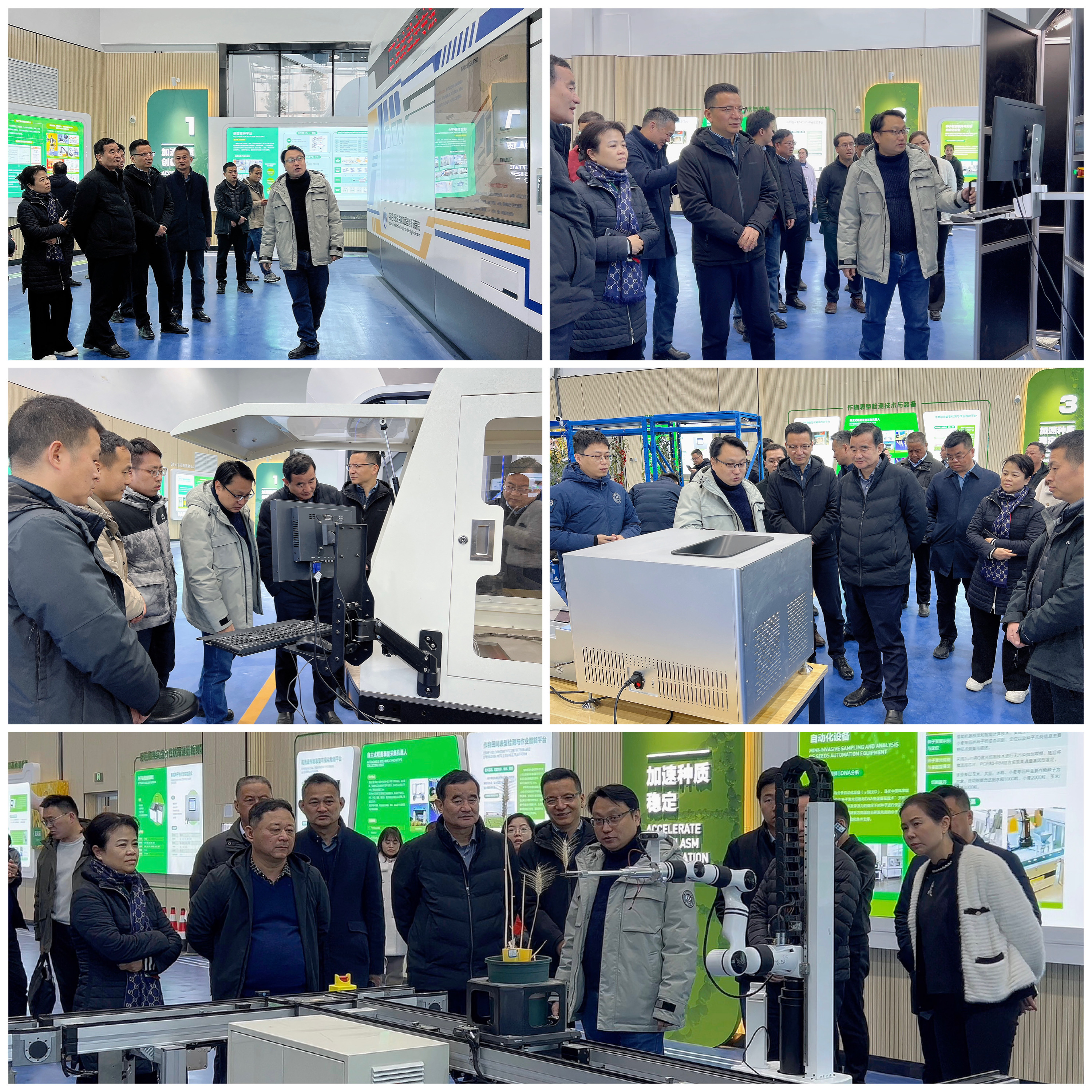 随后,调研团队实地参观了智能育种创新院示范基地,深入了解一代、二代加代舱、种质检测分选仪、种子切削仪、植物表型检测自动化传送装置、采摘机器人以及人工气候箱等设备的运行情况与技术优势。