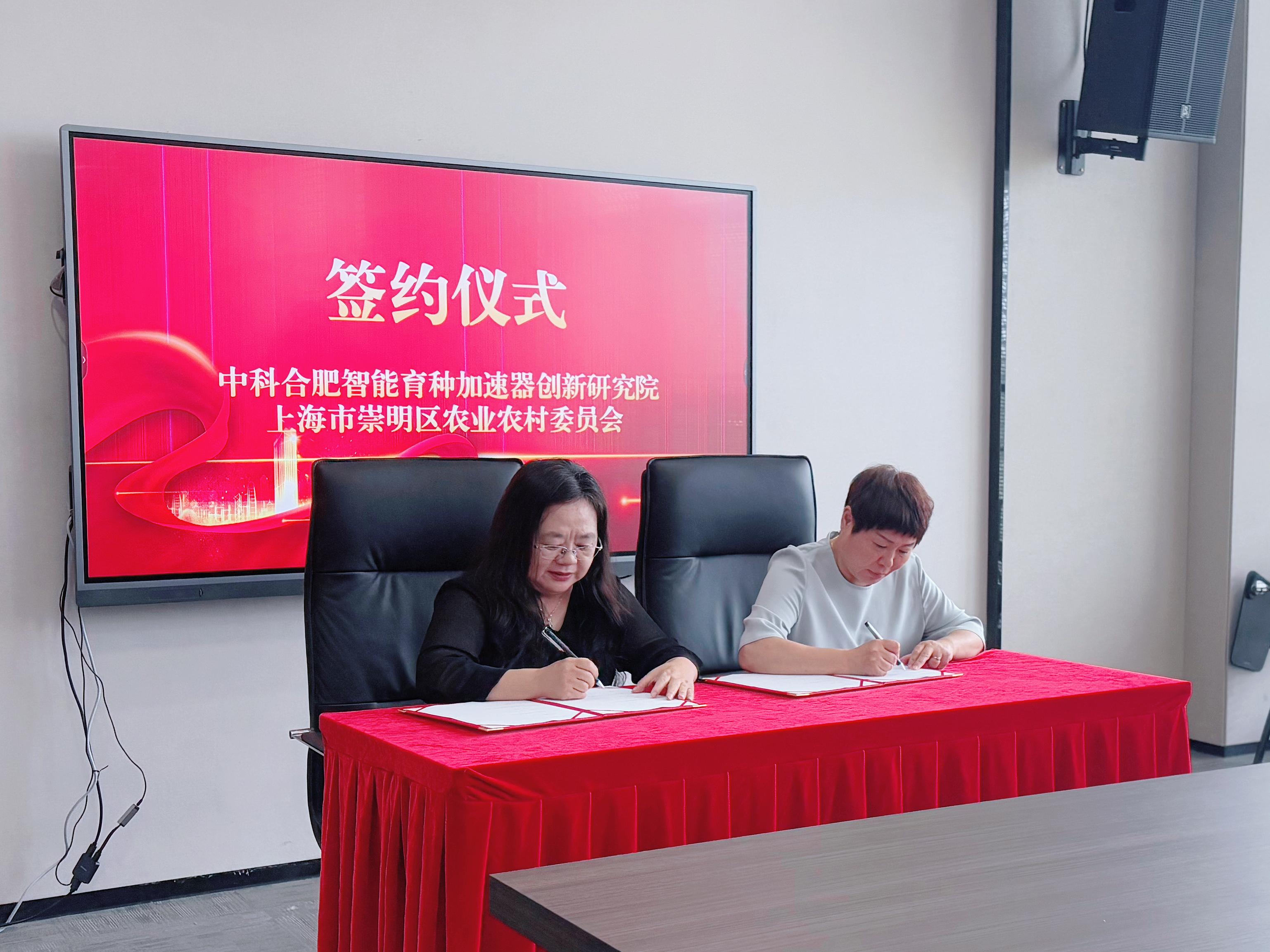 6月25日,上海市崇明区农业农村委员会与中科合肥智能育种加速器创新研究院签署战略合作协议。上海市崇明区委书记缪京、副区长金彪,区委办主任林建华,区农业农村委主任龚霞,中科合肥智能育种加速器创新研究院院长吴丽芳及相关科研人员代表等参会。
